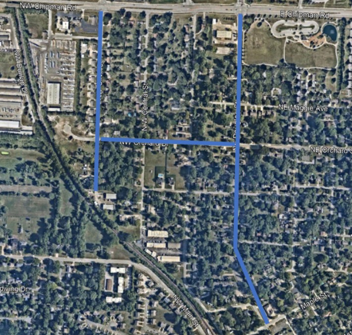 The City of Lee’s Summit is seeking to improve Douglas Street from Chipman Road to 2nd Street. The street will be improved to current standards with improved roadside drainage, new sidewalks on the west side of the roadway, and a shared-use path on the east side of the roadway.